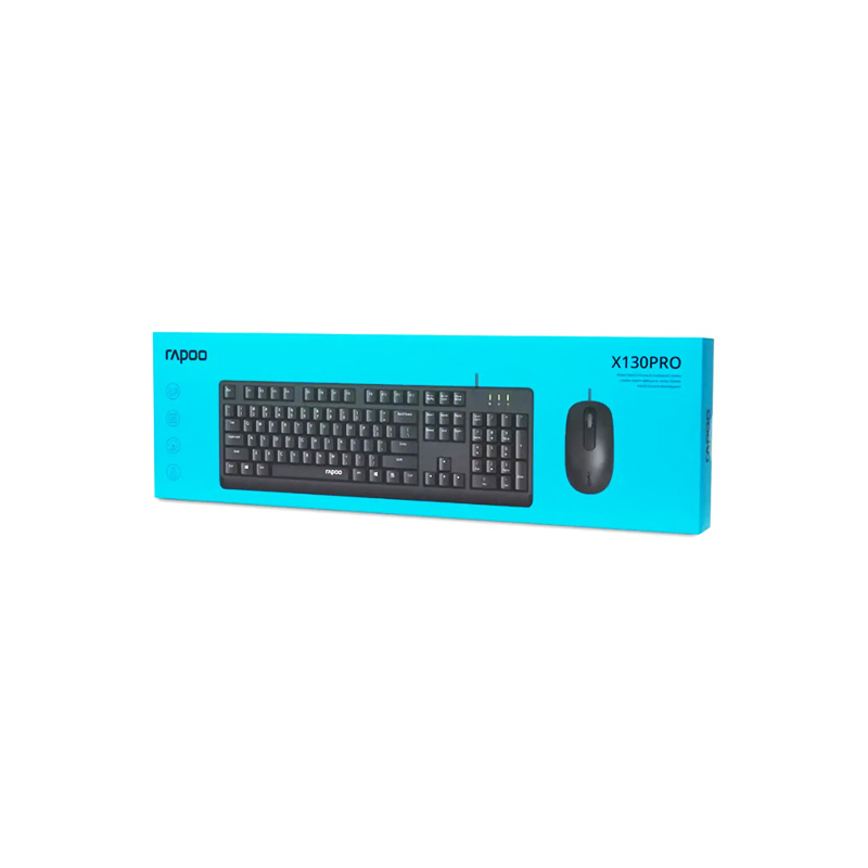 ست کیبورد و ماوسRapoo X130 PRO با اتصال USB پایدار، طراحی ارگونومیک و عملکرد روان، گزینهای مناسب برای استفاده روزمره و اداری است.